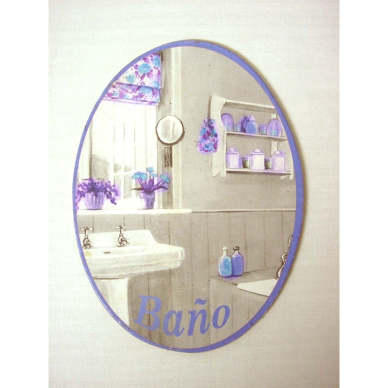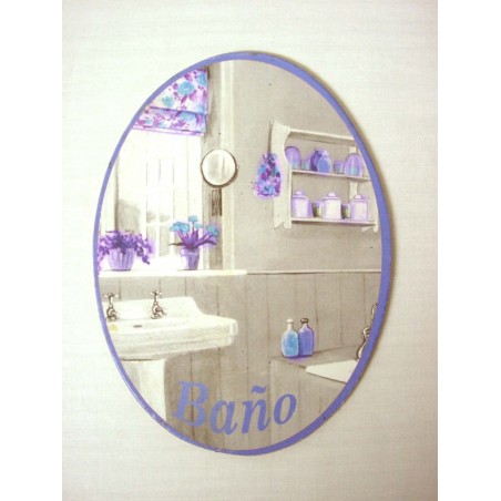 PLACA MADERA OVAL BAÑO LAVABO VIOLETA