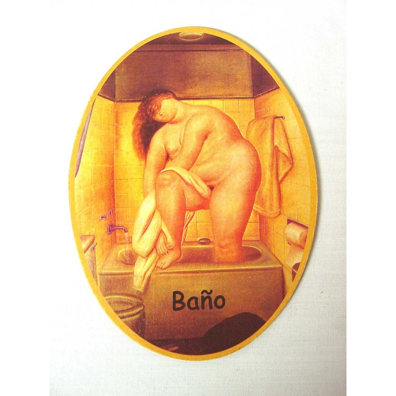 PLACA MADERA OVAL BAÑO GORDA ANTIGUO