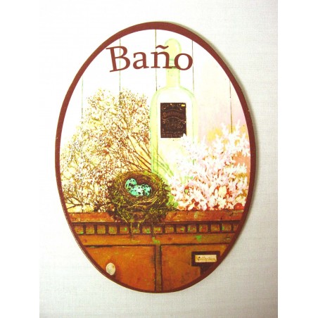 PLACA MADERA OVAL BAÑO NIDO FLORES