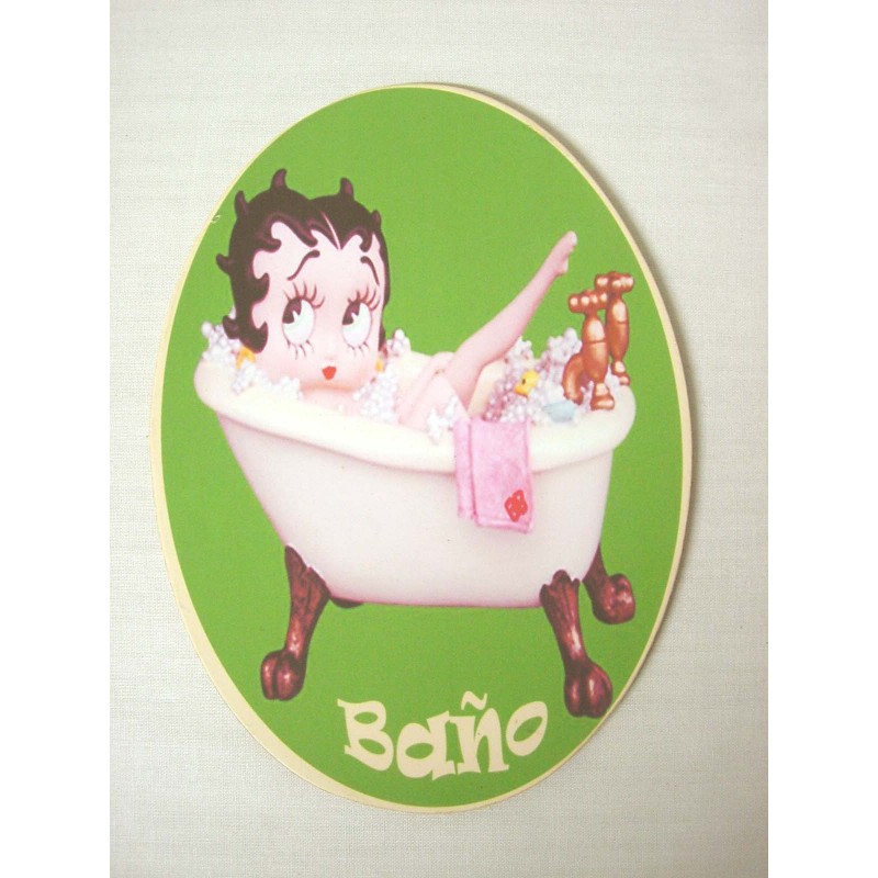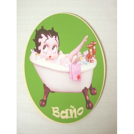 PLACA MADERA OVAL BAÑO BETTY BOOP VERDE
