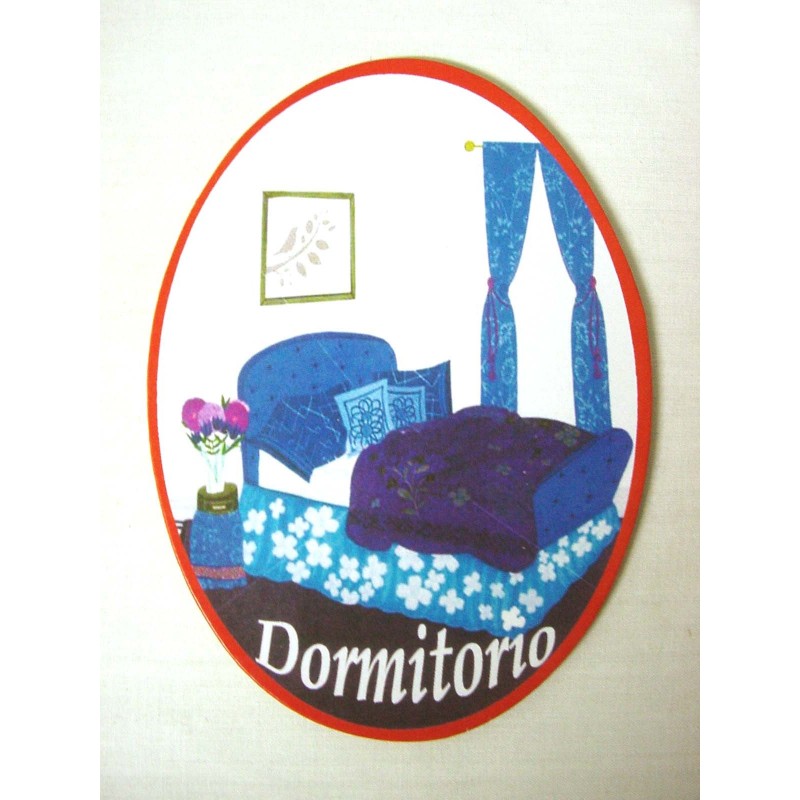 PLACA MADERA OVAL DOMITORIO CAMA ROJA