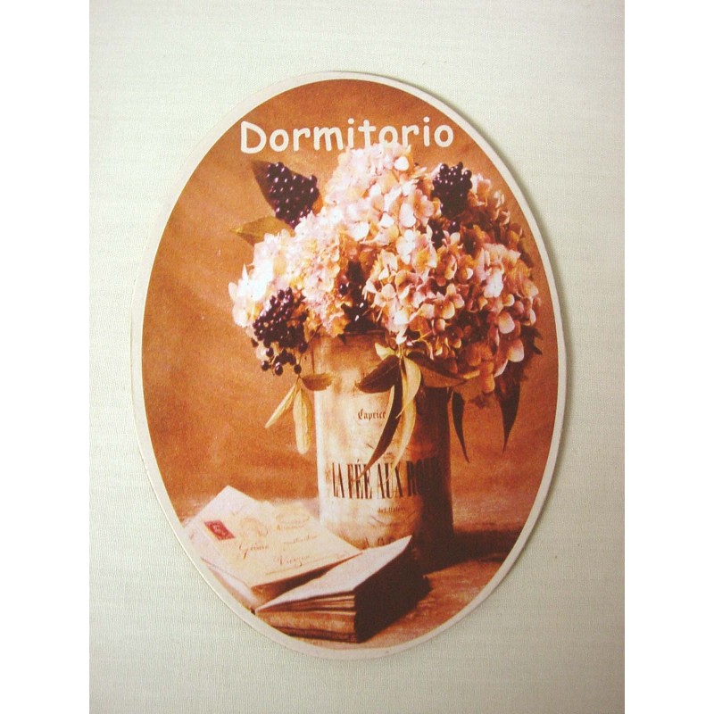 PLACA MADERA OVAL DORMITORIO FLORES