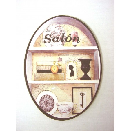 PLACA MADERA OVAL SALON BLANCO NEGRO
