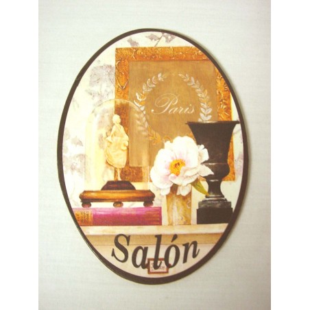 PLACA MADERA OVAL SALON OBJETOS NEGRO
