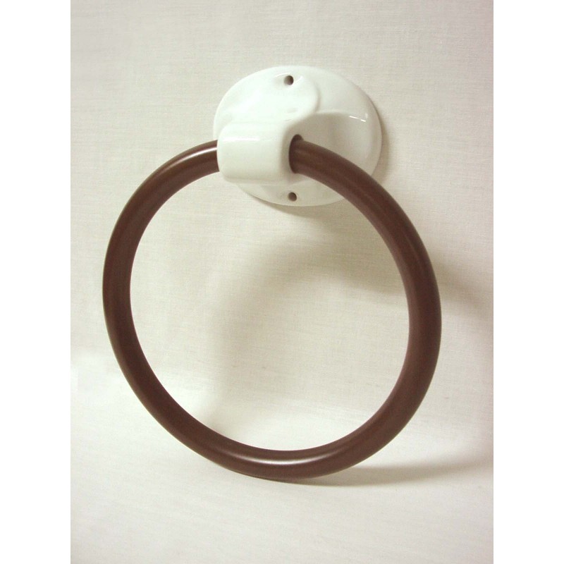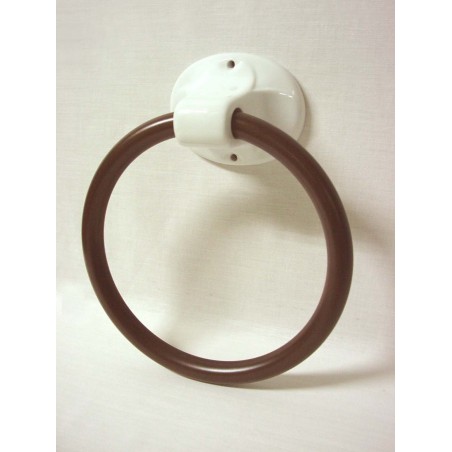 TOALLERO PORCELANA CON ARO MADERA GRANDE MARRON