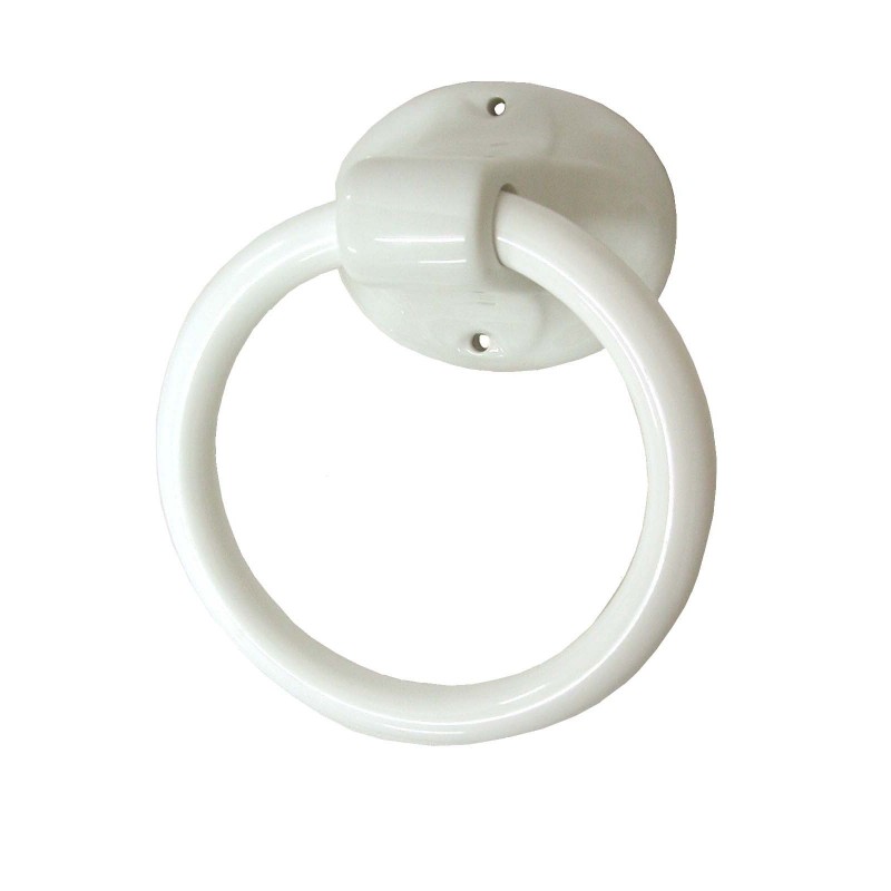 TOALLERO PORCELANA CON ARO MADERA PEQUEÑO BLANCO