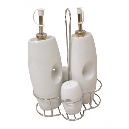JUEGO ACEITE VINAGRE SAL PIMIENTA PORCELANA BLANCO