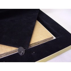 Por dentro lleva unos cartones para hacer presión cuando se cierra el portafotos con la tapa y evitar así que se mueva la foto y el contenido.