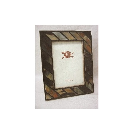 PORTAFOTOS HUESO RAYAS OBLICUAS OSCURO PARA FOTO 13X18 CM