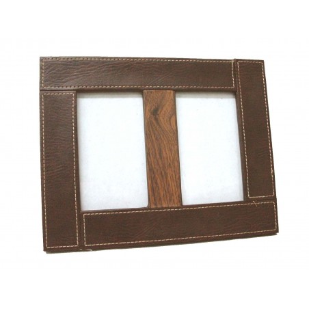 PORTAFOTOS DOBLE IMITANDO PIEL MADERA PARA FOTO 9X13 CM