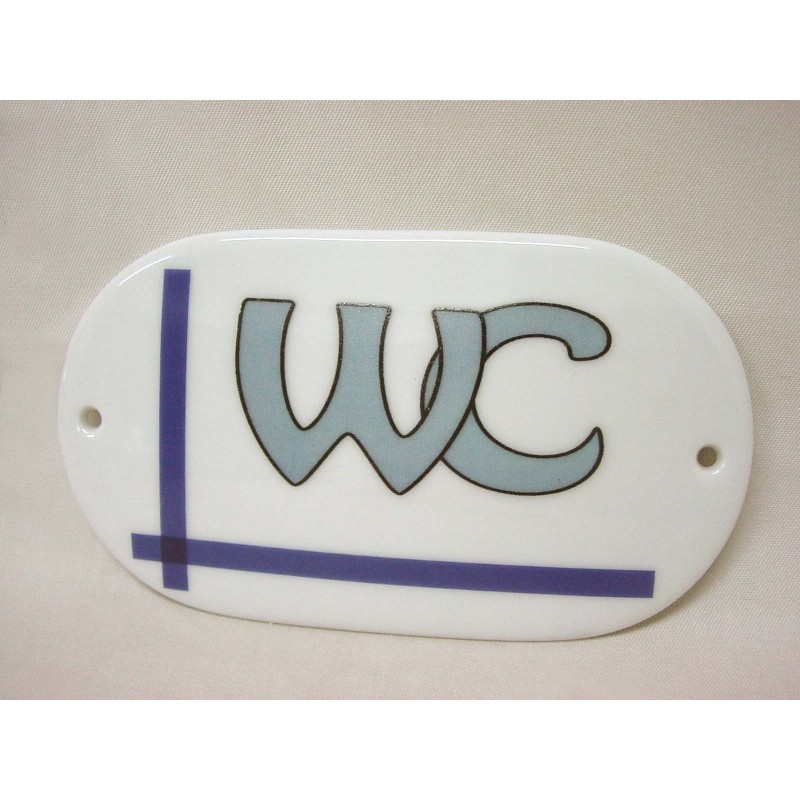 PLACA OVALADA BAÑO WC RAYAS AZUL