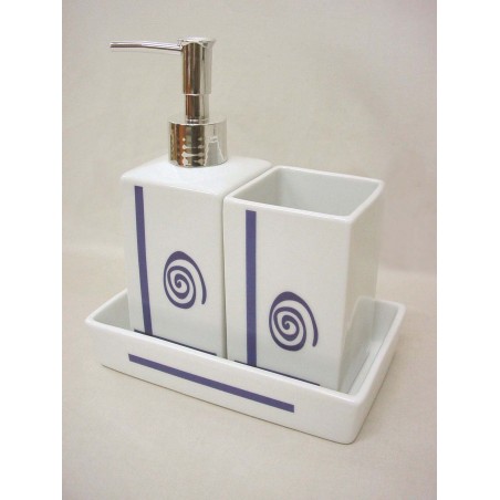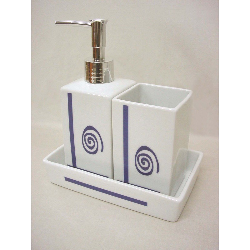 JUEGO BAÑO 3 VASO RAYAS ESPIRAL AZUL