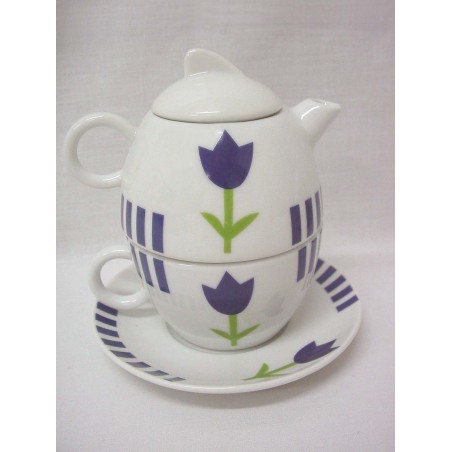TAZA PLATO TETERA 180ML RAYAS TULIPAN AZUL