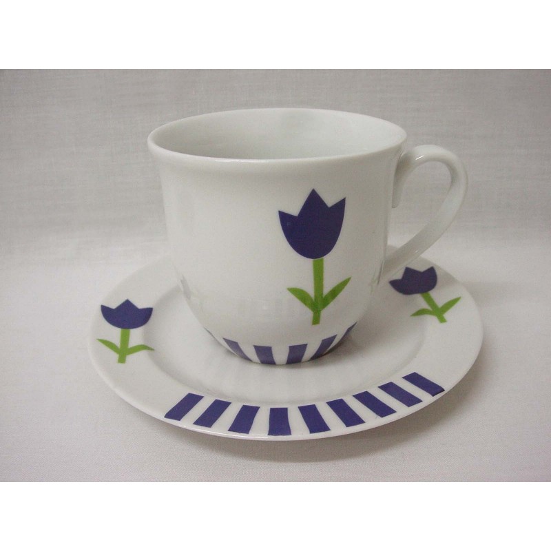 TAZA Y PLATO TE RAYAS TULIPAN AZUL