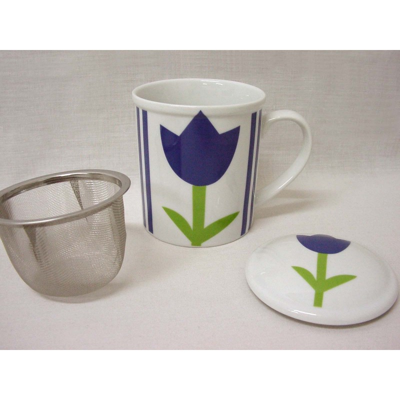 TISANERA FILTRO METAL RAYAS TULIPAN AZUL