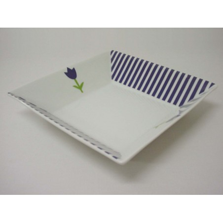 PLATO HONDO CUADRADO RAYAS TULIPAN AZUL