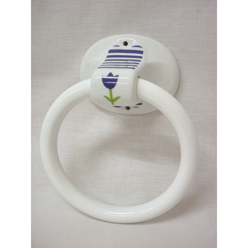 TOALLERO ARO PEQUEÑO BLANCO RAYAS TULIPAN AZUL