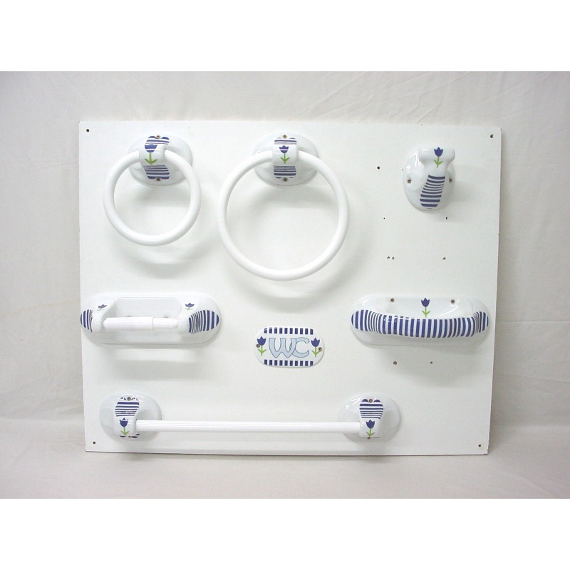 JUEGO 7 PIEZAS BAÑO RAYAS TULIPAN AZUL