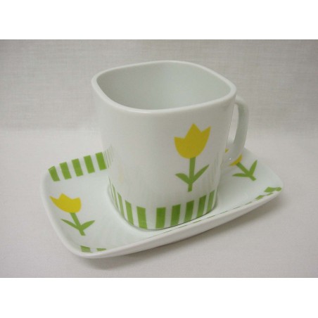 TAZA PLATO RECTA TE RAYAS TULIPAN VERDE