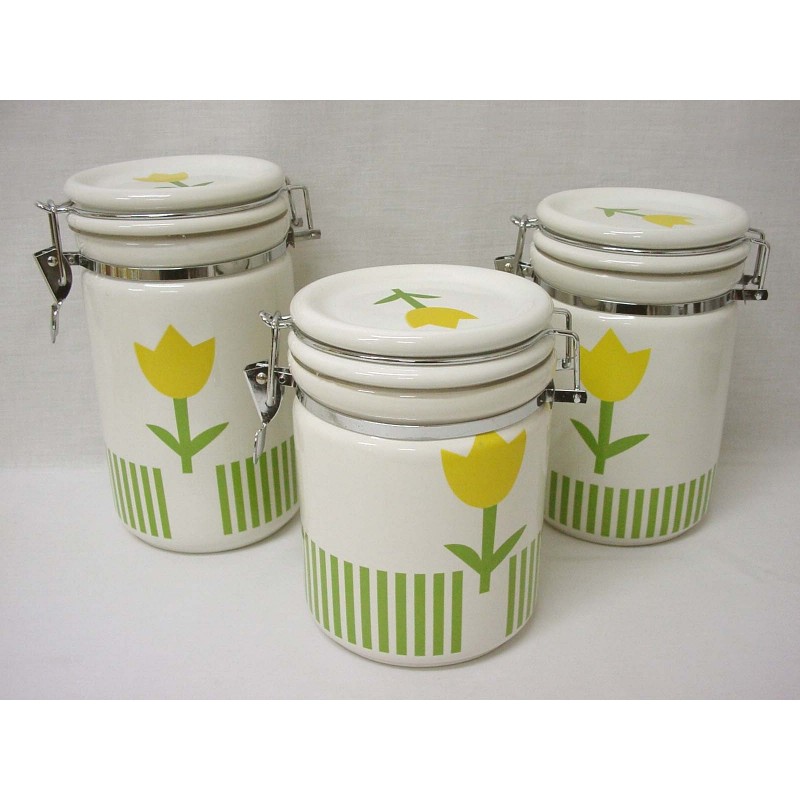 JUEGO 3 BOTES HERMETICOS RAYAS TULIPAN VERDE