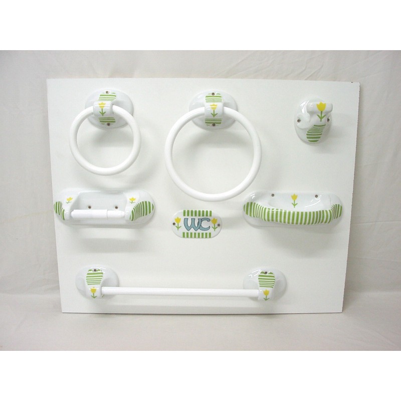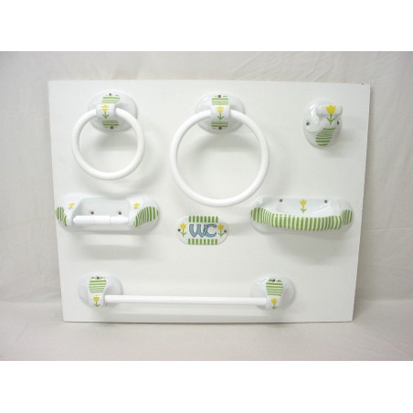 JUEGO 7 PIEZAS BAÑO RAYAS TULIPAN VERDE