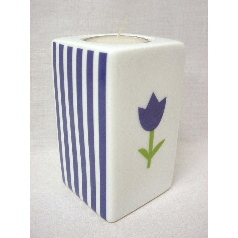 PORTAVELAS GRANDE RAYAS TULIPAN AZUL