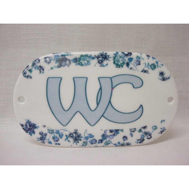 PLACA OVALADA BAÑO TAPICERIA AZUL