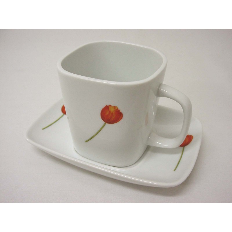 TAZA PLATO RECTA 300ML TULIPAN ROJO