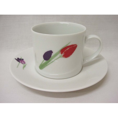 TAZA Y PLATO TE 300ML TULIPANES CESPED