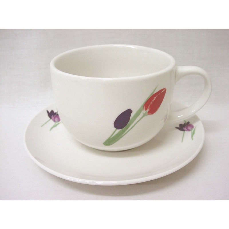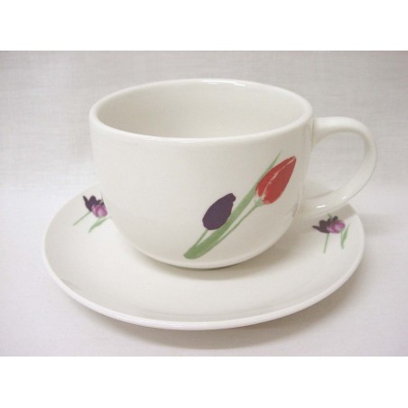 TAZA Y PLATO JUMBO 475ML TULIPANES CESPED