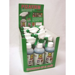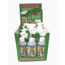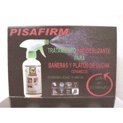 Pisafirm es un tratamiento PERMANENTE que modifica la estructura cristalina de las superficies, creando una red de micro poros que producen un efecto ventosa y garantizan la seguridad al pisar el pavimento, incluso si se encuentra mojado con agua o productos viscosos. Al entrar en contacto con el líquido, este compuesto químico convierte en antideslizante todo tipo de suelos, sin necesidad de efectuar obras, gracias a millones de concavidades no visibles por el ojo humano. Una vez que el agente químico ha modificado la micro estructura superficial del piso, el mismo viene totalmente limpiado removiendo cualquier rastro del químico con una aspiradora de agua. De esta forma el piso queda antideslizante para siempre, sin tener que darle mantenimiento especial, solo manteniéndolo limpio con agua y jabón.