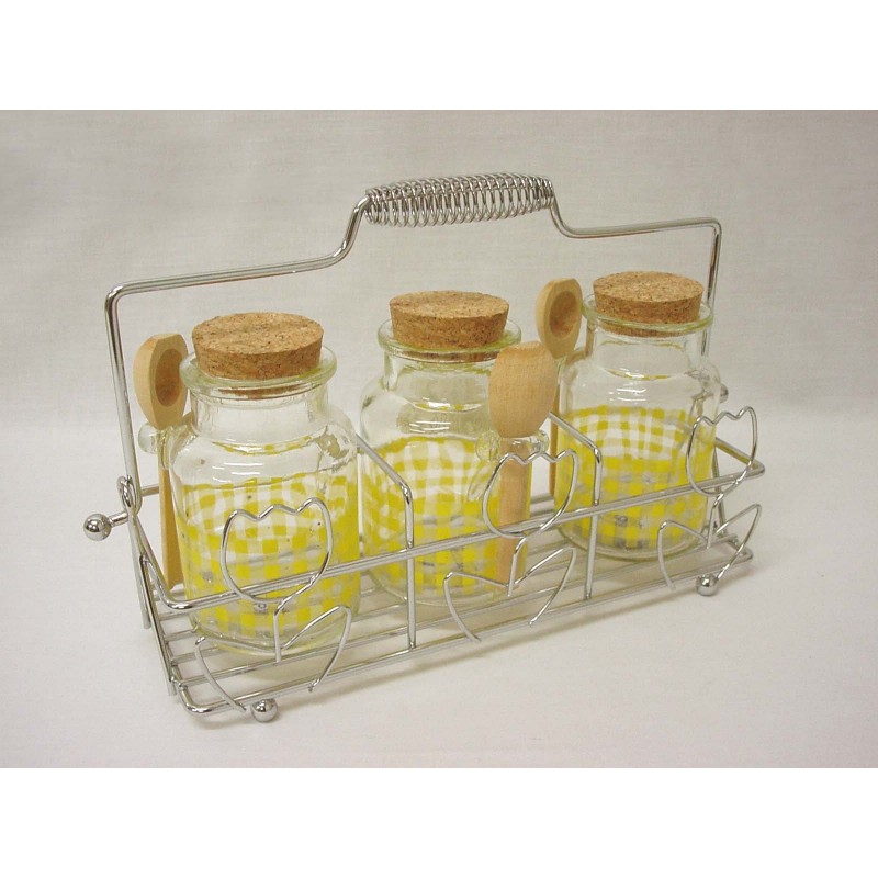 SOPORTE 3 BOTES CROMADO VICHY AMARILLO
