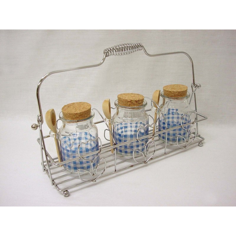 SOPORTE CROMADO 3 BOTES VICHY AZUL
