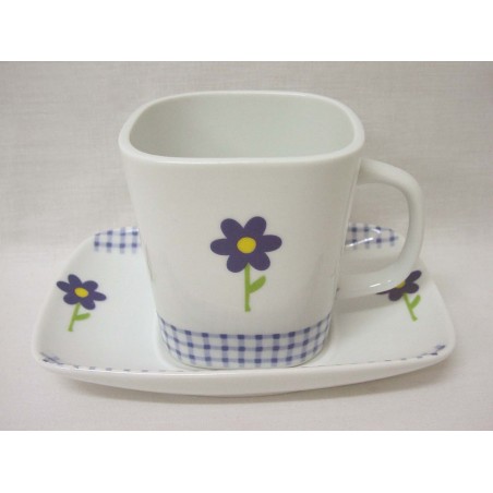 TAZA PLATO RECTA TE VICHY MARGARITA AZUL