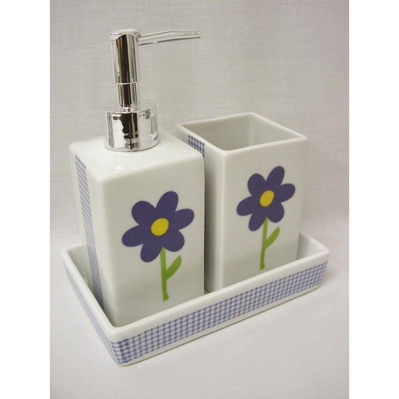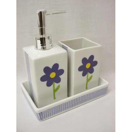 JUEGO BAÑO 3 VASO VICHY MARGARITA AZUL